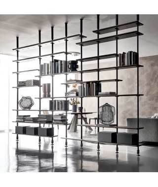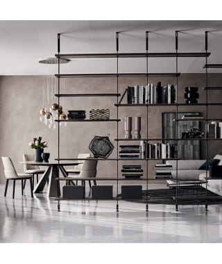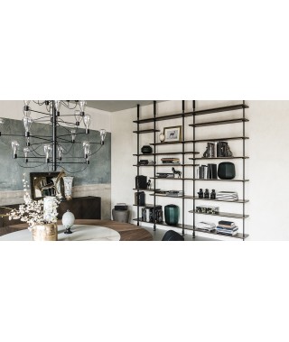 Scenografica, versatile e funzionale, è la libreria modulare di design che porta il segno creativo di Giorgio Cattelan. Autentica espressione del proprio stile, Airport è un sistema di arredo flessibile e personalizzabile a propria misura. Con fissaggio a muro o a soffitto, è posizionabile sia a parete, anche in versione angolare, sia in centrostanza. Risulta perfetta, infatti, come elemento divisorio di un grande ambiente grazie ai ripiani in legno ed ai pratici contenitori. La ricerca sui materiali di altissima qualità si esprime nella gamma delle finiture proposte per questa libreria in legno moderna.