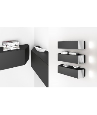 Disponibile in finitura goffrata nei colori a campionario, optional: disponibile con inserto a specchio sulla superfice esterna della spalla inclinata.