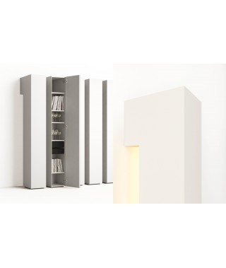 Un volume plastico dalle proporzioni eleganti. Un volume che prende forma. Si stacca dalla parete e disegna lo spazio.  Formosa è un sistema di contenitori di diverse dimensioni e configurazioni per adattarsi a diverse funzioni e ambienti della casa.