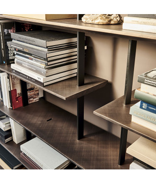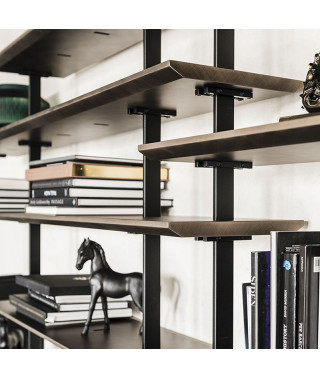 La ricerca sui materiali di altissima qualità si esprime nella gamma delle finiture proposte per questa libreria in legno moderna: ben 11 fra legni ed acciaio, incluse le nuove Brushed Bronze e Brushed Grey che illuminano con un tocco glowy il living.