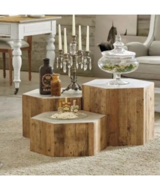Set di Tavolini Esagonali DB004447, in legno vecchio riciclato con top effetto cemento