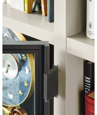 ante SCRIGNO a vetro trasparente con telaio in alluminio brown e schienale corrispondente in rovere termotrattato