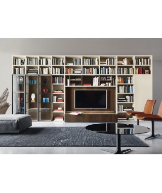 struttura con fianchi e ripiani da 30 mm di spessore e schienal laccati canapa opaco