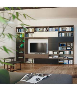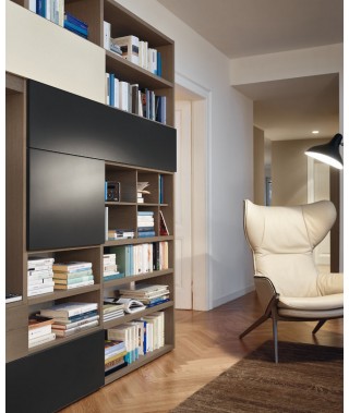 struttura con fianchi e ripiani da 30 mm di spessore e RASTER da 15 mm di spessore impiallacciati rovere argilla
