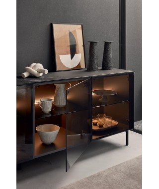 CON BASAMENTO P15L NERO OPACO, CASSA P29L BRONZO OPACO, ANTE VETRO GTG FUME' E TOP P14C CERAMICA BRONZE