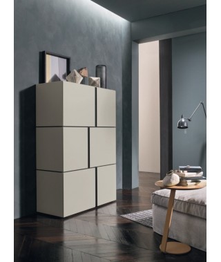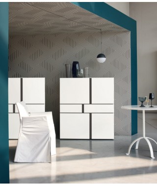 Le madie Abaco nascono con la sovrapposizione dei cassetti e delle ante battenti abbinati in maniera simmetrica o asimmetrica per creare delle relazioni fra linee e superfici decisamente originali e di forte effetto.