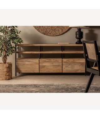 Realizzato con legno di mango e dettagli in ferro, combina il calore del legno naturale con la robustezza del metallo. La sua finitura nera e naturale lo rende un pezzo versatile che si adatta a diversi stili di decorazione. Se stai cercando un mobile che porti carattere, funzionalità e stile al tuo spazio, la madia in stile industriale Celle è la scelta perfetta per un ambiente moderno con un tocco industriale.