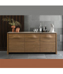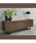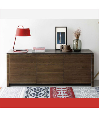 Credenza in legno a due ante e tre cassetti centrali, modello MAG. MAG è una linea di mobili dal design lineare e dalla personalità raffinata. La credenza ha due ante laterali con un sistema di apertura a spinta (push-pull) dotato di calamita, così come i tre cassetti centrali. Ognuno dei due vani laterali comprende un ripiano di appoggio in vetro. Struttura e ante in legno, piano superiore in vetro temprato. Perfetto per una zona living ricercata e un ambiente contemporaneo: scopri tutti gli altri prodotti della linea MAG.