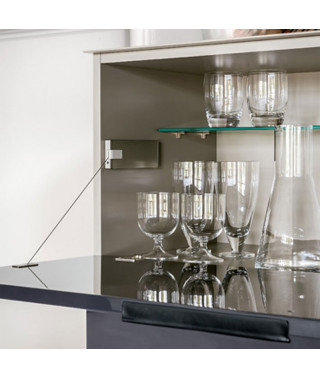 Un’ incredibile gamma di materiali, come le raffinate maniglie in pelle o l’essenziale sistema d’apertura delle ante push – pull, la possibilità di alternare i pieni e i vuoti: