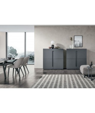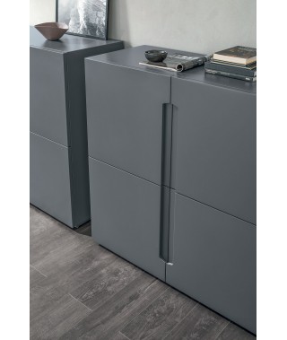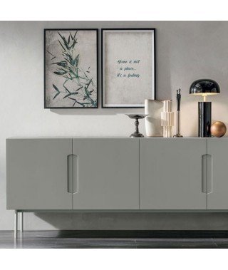 La maniglia ricavata dalla struttura stessa dell’anta è il tratto distintivo della madia: un dettaglio funzionale che diventa decorativo e caratterizza lo stile dei frontali. Un arredo versatile, perfetto in una stanza principale, ma anche in una zona di passaggio.
