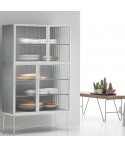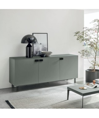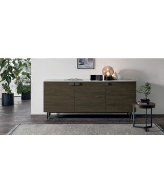 Un design lineare sostenuto da un originale basamento con doppio piedino e valorizzato da maniglie in metallo, quadrate o rettangolari: la madia si esprime attraverso le geometrie.