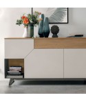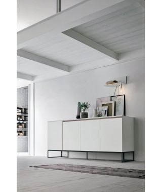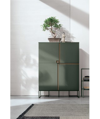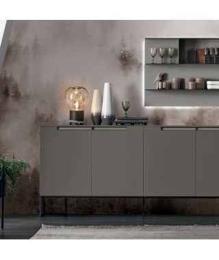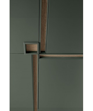 La madia è caratterizzata da una maniglia con interno personalizzabile, tono su tono o a contrasto: un elemento funzionale e allo stesso tempo decorativo che supera la linearità delle forme creando originali geometrie.