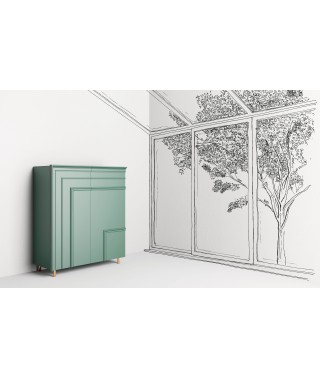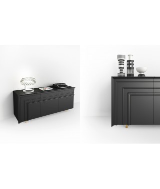 Credenza in agglomerato di legno con due ante e due cassetti centrali,