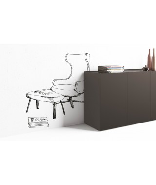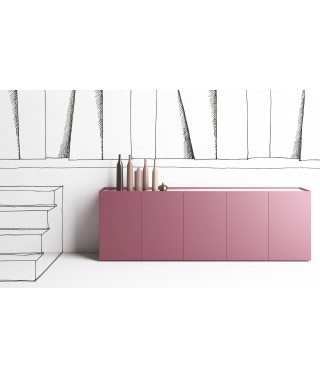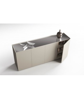 Credenza in legno, top in unica lastra di specchio.  Finitura groffrata in tutti i colori come da campionario