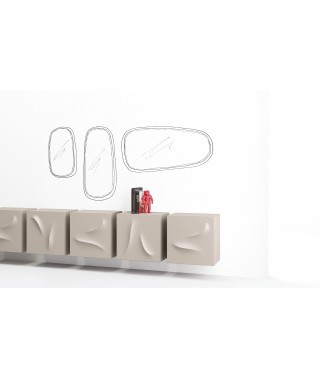 Contenitore pensile in legno con 1 anta in poliuretano rigido con un ripiano spostabile.linee organiche. Plasmate in forma d’arte. Gioco di luci ed ombre. Così nasce riflesso d’onda, e prende vita in un ambiente. Forse riduttivo chiamarlo contenitore da parete, ma sicuramente molto importante ricordare la sua funzione. Un prodotto caratterizzante ma al tempo stesso pensato per un sapiente utilizzo.
