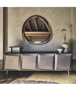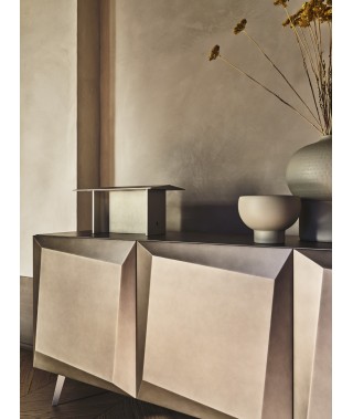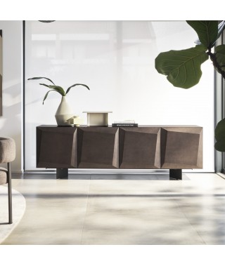 Alterego, con la sua volumetria sofisticata, trasforma l’anta in un elemento tridimensionale, quasi scultoreo. Una madia audace, protagonista del living contemporaneo.