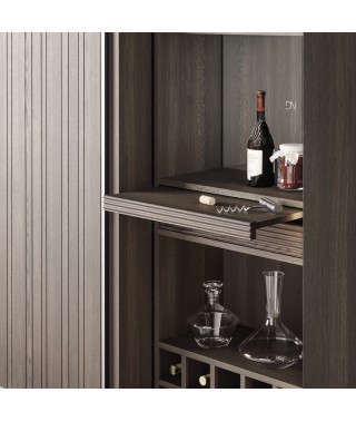 bottiglie, mentre lo specchio serigrafato e un tavolinetto retraibile