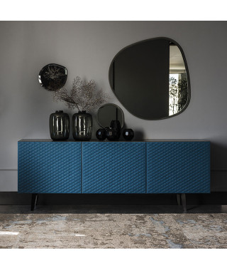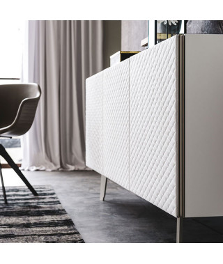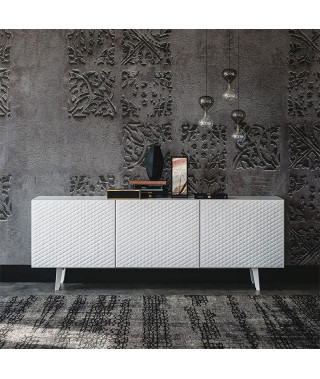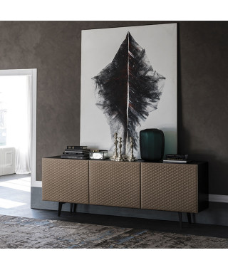 Madia contenitore a due o tre ante in legno goffrato graphite (GF69), bianco (GF71), nero (GF73) o in legno laccato titanio (M11).