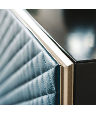 Ante rivestite in ecopelle o pelle trapuntata nei colori come da campionario con profili in alluminio verniciato titanio (GFM11) goffrato.