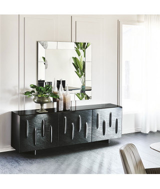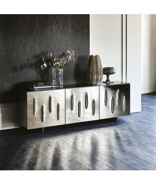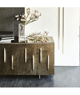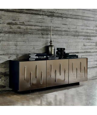 Madia contenitore a due o tre ante in legno laccato moka lucido (L4), bianco lucido (L7), bianco opaco (OP7), graphite opaco (OP69) o titanio (M11).