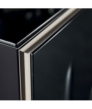 Optional: cassetto interno posizionabile su ognuna delle ante. Optional: top in cristallo specchiato in tinta con le ante.