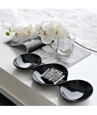 Salsiera a tre ciotole in ceramica smaltata lucida in colorazione nera.