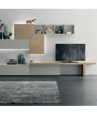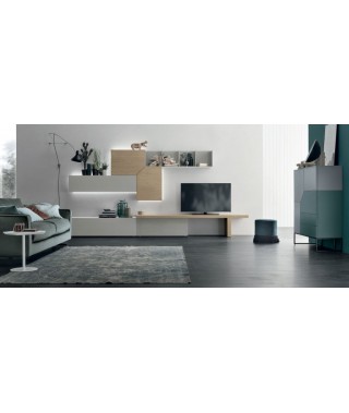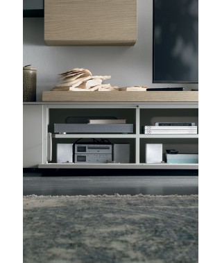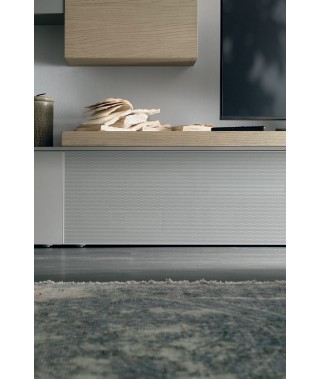 Finiture della foto / Laccato opaco ghiaccio 173, legno rovere sabbia e materico rovere sabbia.
