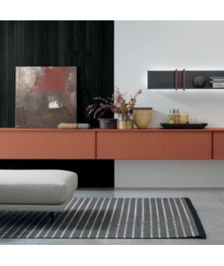 Finiture della foto / Materico rovere carbone, laccato opaco tabasco 171 canettato. Metallo tabasco 171.