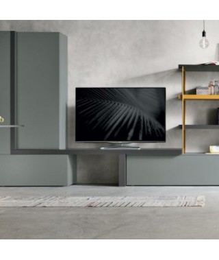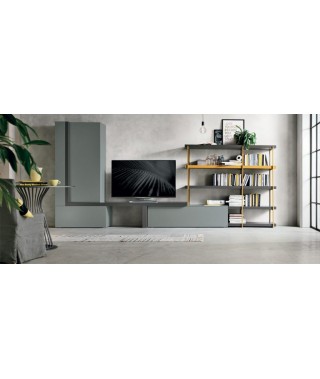 Finiture della foto / Materico opaco basalto, materico opaco antracite, laccato curcuma 169 e metallo curcuma 169.