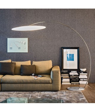 Lampada da terra con paralume in polietilene bianco. Base e stelo in acciaio cromato (08). Lampadina non inclusa.