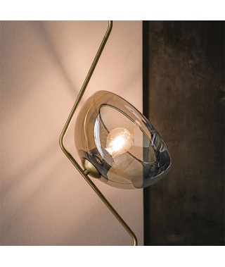 Lampada a soffitto con struttura in ottone o verniciata nero (OP17) opaco e paralume in cristallo fumé.