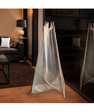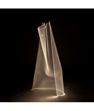 Lampada da salotto costituita da una lamina modanata di metacrilato microstampato e bordo laterale metallico in color oro rosato. Illuminazione LED 17W 1.564 lumen 3.000 K.