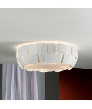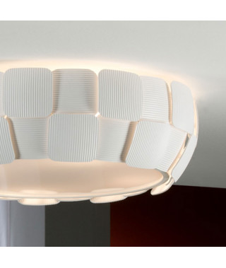 Plafoniera con paralume di placche di policarbonato a superficie corrugata.