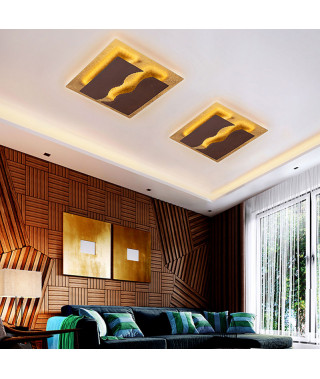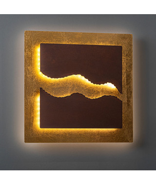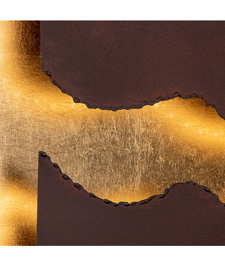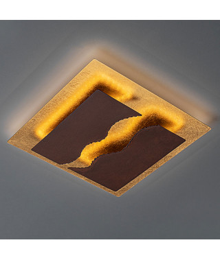 Plafoniera o applique in metallo rifinito in LAMINA D’ORO e acciaio COR-TEN color marrone ossido. 30W LED. 2001 lumen. 3000 K.