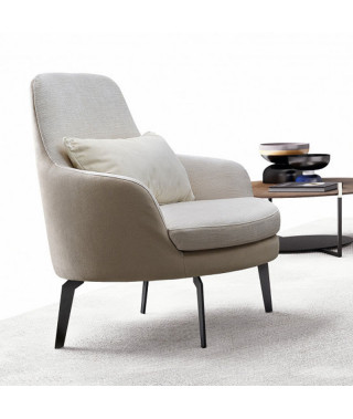 Quasi ricalcando il profilo delle allungate ali metalliche di un moderno aeroplano, gli alti piedini di Air infrangono il soffice orizzonte rappresentato dall’ampio volume della seduta, una sorta di ariosa nuvola che si libra verso l’alto assottigliando progressivamente i propri confini e disegnando nel cielo esuberanti traiettorie curvilinee. Una poltrona che alleggerisce gli spazi, suggerendo quel senso di levità connaturato all’elemento aria.