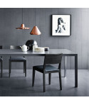 Disponibile in massello di noce Canaletto come nel frassino tinto Rovere Naturale, Borgogna e Canaletto o Nero poro aperto; il cuoio naturale nei colori Hermes, Moro e Nero.