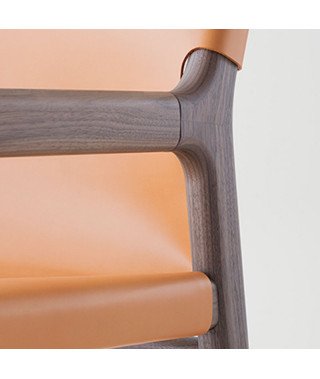 Una storia di attese si risolve nel rapporto di tangenza tra i giunti. La pelle cinge il legno, rinnovando una antica collaborazione: evocazione di nuove relazioni tra materia e colore.
