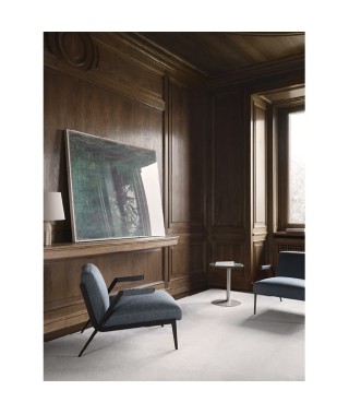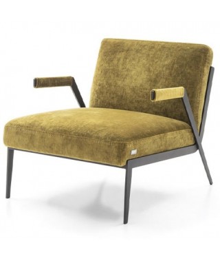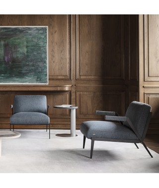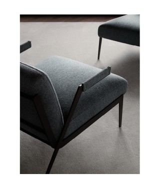 La rigidità della struttura metallica in contrasto con il comfort della seduta creano un’armonia inaspettata e un senso di leggerezza che caratterizzano la poltrona Lima.