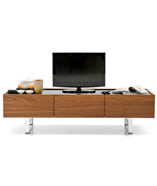 Il mobile porta Tv HORIZON, realizzato in legno, è dotato di due ampi cassetti laterali e di un’ante centrale a ribalta. Il vano centrale, pensato appositamente per contenere il decoder o il lettore Dvd, è diviso da un ripiano in vetro temprato. Un pratico foro passacavi posteriore agevola il collegamento dei cavi elettrici. Il piano superiore, dai bordi rialzati, è impreziosito da un vetro temprato. Il basamento in metallo, a sezione rettangolare, è in finitura cromata.
