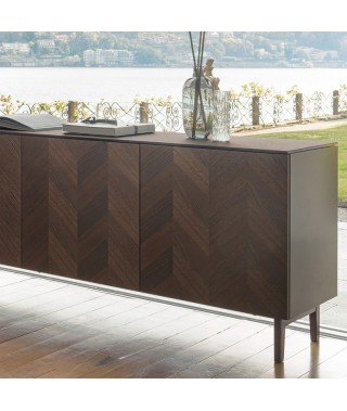 UNIVERSAL è un sistema integrato di credenze e madie modulari caratterizzato dall'estrema versatilità. Madie e porta tv che cambiano immagine al variare delle dimensioni e delle finiture. Volumi compatti che possono avere ante laccate o in legno, lisce o lavorate con disegni ad onde, a losanghe ed a riquadri, che ne sottolineano l’eleganza e la ricercatezza. Combinando struttura, ante, basamenti e finiture si ottengono molteplici personalizzazioni. Top super-sottile a filo ante in gres accoppiato. Il mobile porta TV è dotato di foro passacavi posteriore.