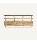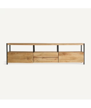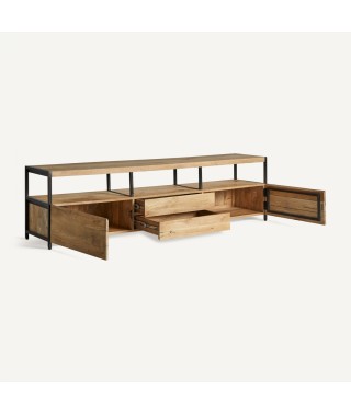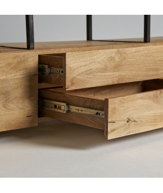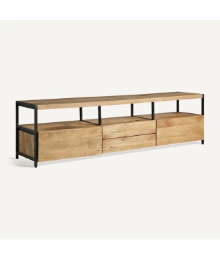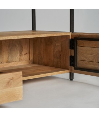 Combina la robustezza del ferro con il calore del legno di mango. Questo mobile tv in legno non smontabile offre un design bicolore in nero e naturale, fornendo un'estetica moderna e un tocco di raffinatezza naturale. Ideale per chi apprezza l'eleganza e la durata.