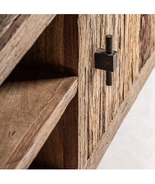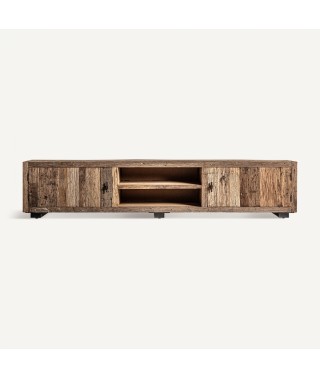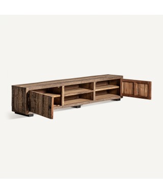 Questo mobile tv in legno naturale, elegante e funzionale, si adatta perfettamente a qualsiasi interno grazie alla sua finitura naturale, fornendo uno spazio generoso per l'intrattenimento e lo stoccaggio.
