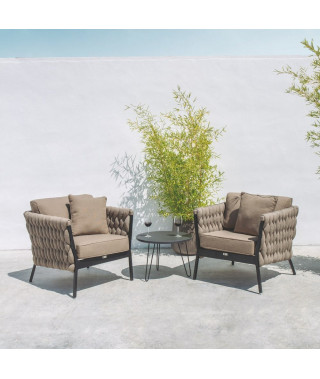 Struttura in alluminio nero con elegante trecciatura 100% Olefina.