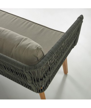 Nota il comfort al sederti grazie ai suoi cuscini inclusi sul suo appoggio in corda intrecciata a mano.
