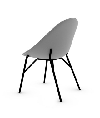 La scocca, cartterizzata dalle forme rotondeggianti e dalle imbottiture morbide, è sostenuta da una sottile struttura metallica.