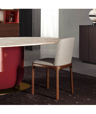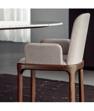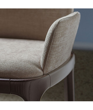 La particolare lavorazione del legno massello, fresato e tornito, crea una straordinaria continuità tattile ed estetica tra le superfici, mettendo in luce la dimensione artigianale del procedimento.