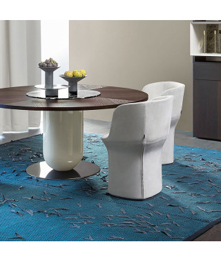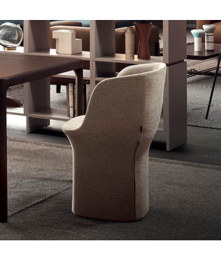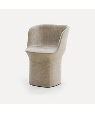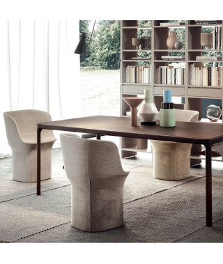 La famiglia di sedute imbottite Esse disegnata per l’azienda Pianca si compone di due poltrone di cui una a base piena e di una sedia.