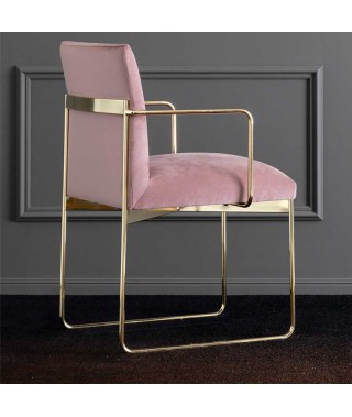GALA è una sedia elegante e raffinata che va a completare la famiglia di poltroncine e sgabelli, una linea di sedute che fa dello stile rétro la sua cifra stilistica. Realizzata in tubo di metallo a slitta, con spalliera in metallo rettangolare e seduta imbottita con cinghie elastiche, questa seduta è perfetta per arredare la zona dining.