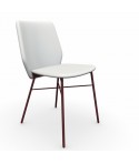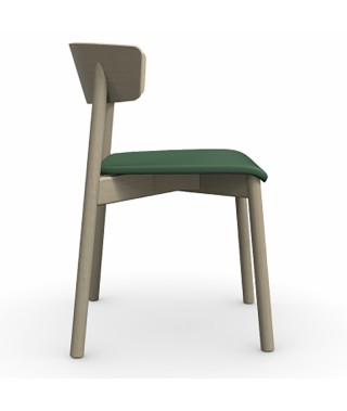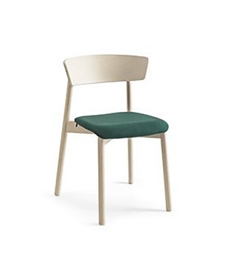 Sedia impilabile con struttura in legno e sedile a scelta fra imbottito o multistrato di legno.