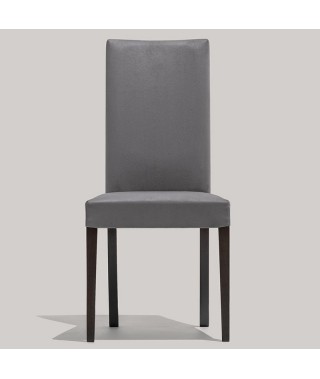 Sedia modello COPENHAGEN dal design classico, realizzata in legno massello con la seduta imbottita e rivestita in tessuto tecnico spalamto.